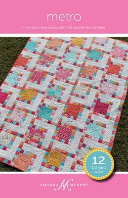 Metro is a simple one-block 72-1/2’’ x 96-1/2’’ quilt that is inspired by metropolitan subway maps. Although it looks complex, its pops of color are made with strip sets and its large 6’’ blocks give a place for colorful fabrics to shine! The examples shown feature Amanda Murphy’s Cityscape Night and Day collections for Contempo of Benartex.