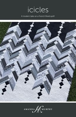 Icicles measures 50-1/2in x 68-1/2in and is a modern take on a classic “French Braid” quilt. It features a light and dark Background print plus supporting fabrics. Plus, it is scrap-friendly! The samples shown on the covers are in Amanda’s black, white, and grey Botanica collection and her colorful Vibrancy collection, both for Contempo of Benartex. This pattern is great for almost any collection when combined with a dark and light background print.