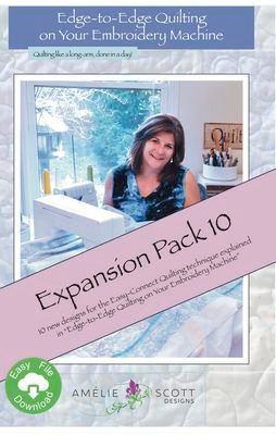 This expansion pack provides 10 additional quilting designs to use with the Easy- Connect Quilting technique explained in our book, Edge-to-Edge Quilting on Your Embroidery Machine. Intended to be used with our book, this Expansion Pack does not include instructions. But, it does provide new designs that you can use to get fun and beautiful quilting results that look like they were done on a long-arm. All files are available in three sizes: 5.1 in x 9.5 in, 6.2 in x 11.5 in, 7.3 in x 13.5 in. Designs in the expansion pack include: Live Laugh Love, Maple, Penguins, Pond Life, Paper Planes, Runners, Sunflowers, Sweet Treats, Wavy Boxes, Wildflowers. Files are provided in the following formats: ART, DST, EXP, HUS, JEF, PES, VIP, VP3.