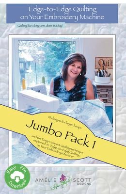 The Edge-to- Edge Jumbo Pack has 10 quilting designs specifically made for the largest hoops on the market. The "Large" designs are still the same as in all of the other Expansion packs, but the "Oversized" designed are intended for the new Pfaff and Viking 360mm x 260mm hoops, and the "Extreme" designs are available for the new Baby Lock and Brother 272mm x 480mm. Intended to be used with our book "Edge-to-Edge Quilting on Your Embriodery Machine, this Expansion Pack does not include instructions. But, it does provide new designs that you can use to get fun and beautiful quilting results that look like they were done on a long-arm. Designs Include: Blocks, Bows, Butterfly, Curly Meander, Feathers, Garden, Ginko, Honeycomb, Pansy. **All patterns with Individualize download code that allows a customer to download the designs and PDF instructions**
