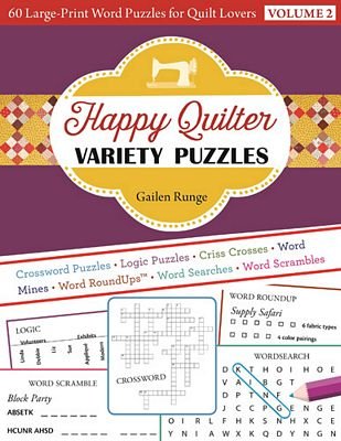 60 Large Print Word Puzzles for Quilt Lovers, Volume 2. Keep your mind sharp and have fun with over 60 word puzzles for quilters and sewist! Lots of choices for all word lovers. Great for guilds, classes, shop hops and more! Give your favorite quilter or sewist the gift of entertainment. Softcover, 80 pages. Author: Gailen Runge.