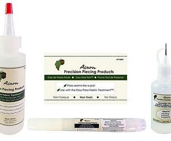 Designed by Shelley and Bernie Tobisch, Acorn Precision Piecing''s Easy Press Fabric Treatment makes it easy to create accurate, flat seams everytime you quilt! The mist bottle included in this combi pack helps you to distribute the Easy Press Fabric Treatment evenly across your fabric in seconds and works perfectly in conjunction with the 16 oz. bottle.