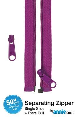 ByAnnie''s 50-inch Separating Zipper + Extra Slide is a great addition to your sewing arsenal. This zipper is perfect for coats, garments, specialty bag construction, home decor, and anywhere that a separating zipper is needed. With 50 inches of zipper tape available, you can sew a coat that reaches your knees!PLUS, with the included extra slide, you can use any remaining zipper tape for another project to match your outfit.Like all ByAnnie Handbag Zippers, the 50-inch Separating Zipper is a YKK #4.5 nylon coil zipper with a wide tape. This makes it easy to install and robust enough for everyday use, yet unobtrusive on your projects. You''ll love how light and flexible the zipper is on your projects as well, not like other clunky, heavy, and hard separating zippers traditionally on the market.To make your zipper stocking easy, it is compatible with slides/pulls/tape from our other zipper lines including our 24" 30", 40", and Zippers by the Yard.Available in 14 colors — which coordinate with ByAnnie''s Lightweight Mesh, Fold-over Elastic, and other Handbag Zippers — you have a wide variety of colors to complement your project.