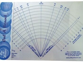 Put together the two pieces make a standard Ten Degree Wedge for 50 in circles. Why two pieces? Easier to mail, Easier to take to class , and easier to store. Inludes a bridge to connect the two pieces, as well as a wonderful free pattern.