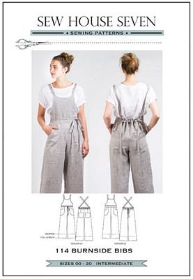 Dressy, wide leg, tie back overalls. 2 versions - Cropped & Full Length. Size: 00 - 20. Intermediate Level