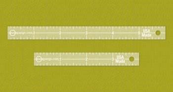 1/2in Stitch Spacing Ruler Set. Designed in Sue Spargos studio, specifically for marking perfectly spaced stitches. Each mini duo fits perfectly in the palm of your hand and can be effortlessly manipulated around applique images, layers and shapes in order to mark, plan and space stitches around large, average and small scale designs. Sizes- 1/2in x 4in, 1/2in x 6in. Uses- perfectly spaced stitches, center line allows for background marking, as narrow as a 1/4in, for textural stitching. Proudly Made in the USA. Conveniently sized and great for stitching on the go.