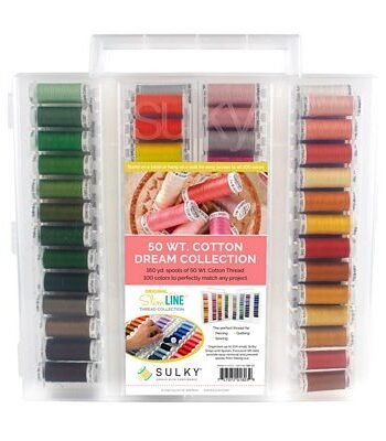 Sulky 50 wt Cotton Slimline Dream Collection contains all 100 colors of 160 yd Spools. Perfect for quilting and sewing projects. The handy case is easy for sewing studio storage or on the go.