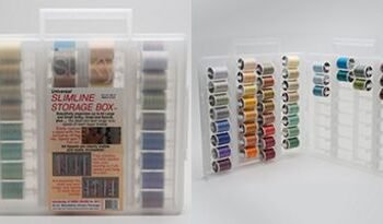 Third box of 42 colors, 12 weight thread. Beautifully organizes up to 64 Large and Small Sulky Snap-end Spools, plus the small and next larger size spools of most major brands. Easily remove a spool with the exclusive lifting tab. Spools will not fall out. All spools are clearly visible and easily accessible! Free standing, partially opened near your machine or fully opened and hung on a wall. *DROP SHIP* *FREIGHT INTENSIVE* Billable transportation charges for freight intensive items will be the greater of the dimensional weight compared to the actual weight. In addition to transportation charges, freight carriers may assess an additional oversize charge per package.