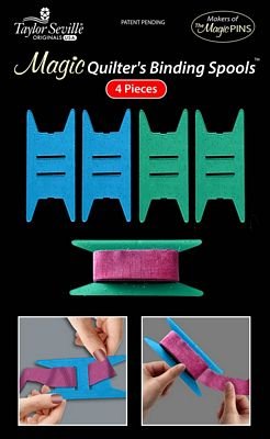 Organize your prepared binding on the magic binding spool. Each spool holds enough for a whole quilt any size you make. Also use these attractive spools to store extra binding. Includes four binding spools.