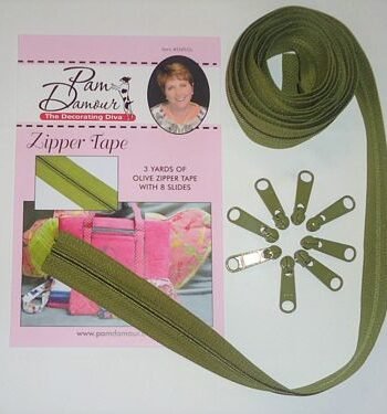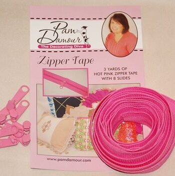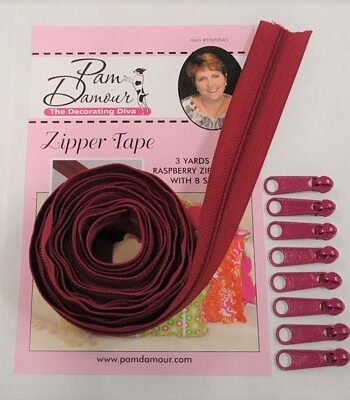 This amazing zipper tape comes in a continuous 3 yard piece with eight slides so you can cut off just what you need. Because it''s designed for the home decorating industry, you can use it for all your pillows duvets slipcovers luggage backpacks purses & more. 3 yards available in various colors. Comes with 8 slides. Pam Damour