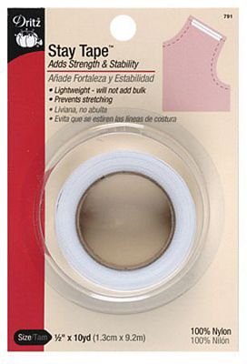 Use to stabilize waistlines curved necklines shoulder seams side pocket openings, lapel roll lines and gathered seamlines. Tape will not shrink and can be cut without fraying. Stitch tape to seamlines to prevent stretching. 1/2inx10yd roll. 3 rolls per box. (Carded). Purcahse by the box.