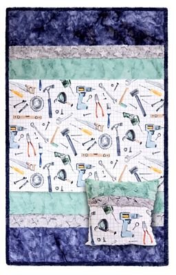 Shannon Fabric''s Picture Perfect Cuddle Kit in Handy Dandy. Finished Size 38 in x 58 in. Machine Wash Cold, Tumble Dry Low, No Fabric Softener. 100% Polyester.