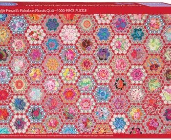 Enjoy a fun and creative 1000 piece jigsaw puzzle featuring the gorgeous Fabulous Floral Quilts from Kaffe Fassett. This colorful and detailed statement piece is perfect for quilters, puzzle lovers, and anyone looking to challenge themselves. 1000 pieces. Dimensions 29.5in x 19.5in.