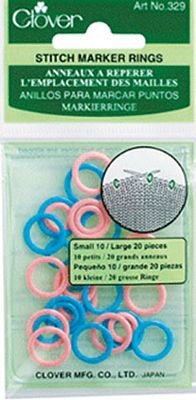 CLOVER JUMBO LOCKING STITCH MARKERS 3109 Clover Soft Jumbo Stitch Ring Markers are soft flexible ring stitch markers that are slipped onto needles to mark the beginning and ending of pattern stitches or increasing and decreasing on the garment. 12 Rings per pack. Pack contains: 6 small markers for needle size: 8.0 - 10.0 mm and 6 large stitch markers for needle size: 12.75 -19.0 mm