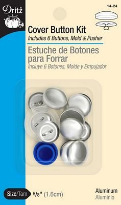 Size 24; 5/8in (1.6cm); 7ct. buttons plus mold and pusher. Use for garments, accessories and home decor. May be washed or dry cleaned.