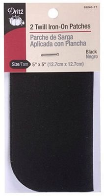 Twill Iron-On Patch Black 2ct 6/box