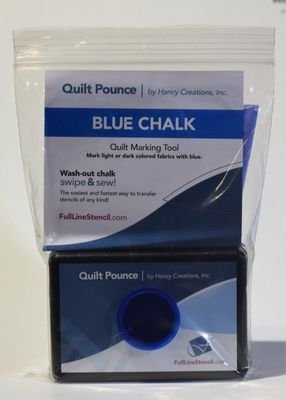 Quilt Pounce with Blue Chalk. The easiest and fastest way to transfer stencils of any kind! Mark dark colored fabrics with white. Brush off or Wash off to remove. DO NOT iron off! Hot or cold water can be used if washing out. Powder is non-toxic and contains cornstarch.
