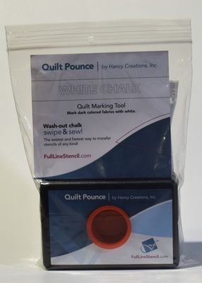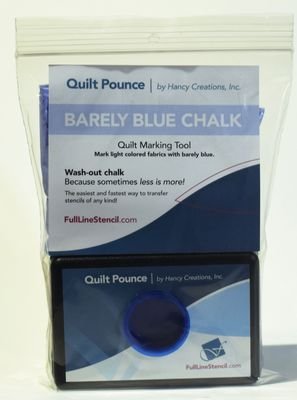 Quilt Pounce with Barely Blue Chalk. The easiest and fastest way to transfer stencils of any kind! Mark dark colored fabrics with white. Brush off or Wash off to remove. DO NOT iron off! Hot or cold water can be used if washing out. Powder is non-toxic and contains cornstarch.