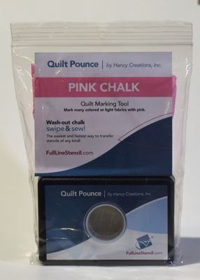 Quilt Pounce with Pink Chalk. The easiest and fastest way to transfer stencils of any kind! Mark dark colored fabrics with white. Brush off or Wash off to remove. DO NOT iron off! Hot or cold water can be used if washing out. Powder is non-toxic and contains cornstarch.
