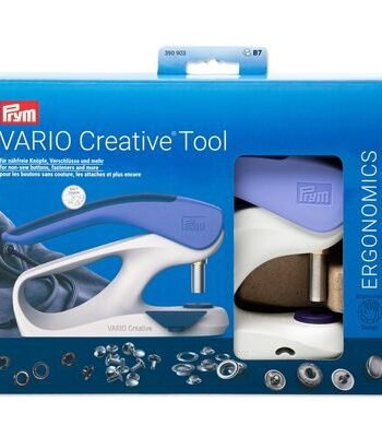 The VARIO Creative® Tool combines many functions in just one tool: punching holes, attaching snap fasteners and eyelets, and applying rivets. The ergonomic grip shape, the wide support surface and the vertical processing direction enable an optimized power transmission, even with thick materials. It is compatible with all existing Prym tool sets and consumer items from the Prym sew-free program - a convenient alternative to the Vario press stud, hole and eyelet pliers. It includes punching tools 2.5, 3.0, 3.5, & 4.0 mm and features a power lever with 3 power levels for precise work and significantly less effort. The table attachment, sold separately, provides additional stability when working. **Map Pricing ** $79.19 This item is subject to a Minimum Advertised Pricing Policy (MAP price listed). Full Brewer MAP policy details are available for review on our website under the Shop Resource tab.