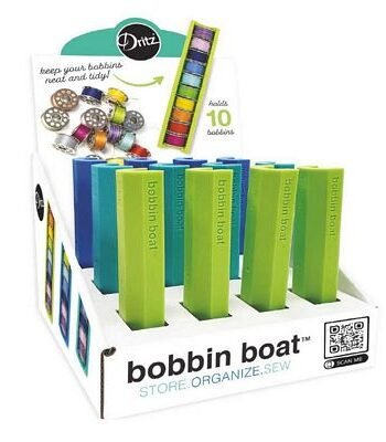 Maching Bobbing storage has never looked so good... or impulsive! Eye catching counter display to encorage multiple unit purchase. Pre-loaded with 12 Bobbin Boats in three cheerful colors.