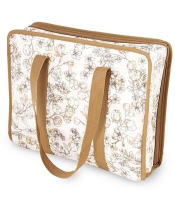 The Dritz all-purpose project organizer bag is the perfect companion for sewing, quilting, needlecraft projects on-the-go. It''s a portable organizer featuring loads of pockets for keeping supplies separated and ready to use. Soft beige floral print with tan handles and trim. Full zippered closure. 2 handles. 8 zippered transparent inner pockets. 12 elastic loops for securing various tools Size: 13 in L x 10 in W x 3 in H. **Map Pricing** $34.39 This item is subject to a Minimum Advertised Pricing Policy (MAP price listed) Full Brewer MAP policy details are available for review on our website under the Shop Resource tab.