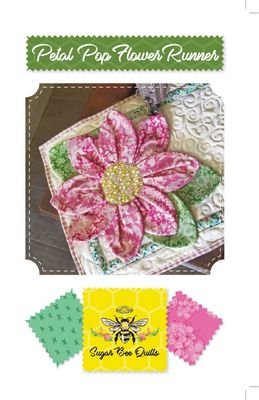 The Petal Pop Flower Runner boasts dimensional detail with two flowers on each end of the table runner. This is a great project for all seasons. Simply change the fabric to change the feel of the project. This pattens comes with a paper template, but was designed to be used with the acrylic Petal Pop Petal Template (SBQ02). The flowers and leafs are both created with the template shape. This table runner would look lovely as a sunflower, daisy or even a poinsettia to name a few. Fat quarter friendly and some yardage required. Look for other Petal Pop projects and other patterns by Sugar Bee Quilts. Pattern Designed by Jeana Culbert.