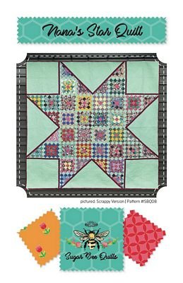 This large-scale lone star quilt pattern features Granny Square blocks as the center focal of the design. The Granny Square blocks in this pattern uses 2 ½”x 2 ½” squares so it is pre-cut friendly. Cutting instructions are provided for a both scrappy version (as pictured on the pattern cover) or a 5-color version. Designed by Jeana Culbert of Sugar Bee Quilts.