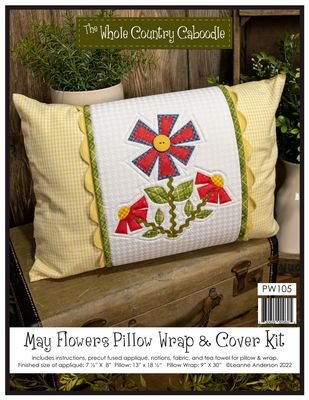 Kit includes pillow wrap and cover instructions, precut fused applique, notions, fabric, single sided fusible foam batting, ric rac, hook and loop fastene, and tea towel for pillow cover & wrap.Finished size of applique: 6.5 in X 10 3/8 in Pillow: 13 in x 18.5 in Pillow Wrap: 9 in X 30 in