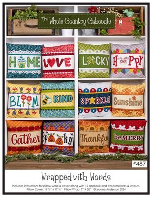Pattern includes instructions for pillow wrap & cover along with 12 applique and decorative trim templates & layouts. Finished size of Pillow: 17 1/2in x 17 1/2in Pillow Wrap: 7in X 30in Approximate size of appliqués are 15in x 5in Approximate size of decorative trim are 18in x 4in