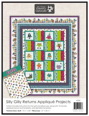 Pattern includes instructions for the quilt and pillowcase, along with 10 monster appliqué layouts and templates, and alphabet templates. **Available April 2026**