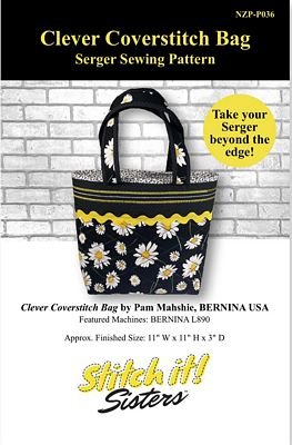 Take your serger beyond the edge! Learn how to make our NEW! Clever Coverstitch Bag — completely with an Overclock/Coverstitch Combo Serger! This creative bag features Chainstitching and Coverstitching with both decorative and functional uses. Plus new flat construction methods, along with a 4-thread stitch to put the bag together. Stitch our beautiful Clever Coverstitch Bag while learning serger settings for: 4-thread wide and narrow overlock seaming with fusible thread, coverstitch single needle chainstitching for serger quilting, narrow coverstitching with decorative threads, and wide coverstitching for construction! "Have you ever wondered if your serger can do more than just seam finish the edge of fabrics? Our Clever Coverstitch Bag is a fun sewing project made completely on a serger/coverstich combo machine. Take your serger beyond the edge and discover the many ways your serger can be used creatively as well as functionally!" — Pam Mahshie, BERNINA USA. Our Clever Coverstitch Serger Bag is a great sewing project for beginner sewers and seasoned sewists, alike! Made completely with a serger — learn serger settings for stitching decorative threads. Bag features serger quilting and decorative stitches made with different serger chainstitches and decorative threads. Approximate finished size: 11in W x 11in H x 3in D Step-by-step instructions and photos. Project designed by Pam Mahshie, BERNINA USA. Exclusive pattern by Nancy Zieman Productions.