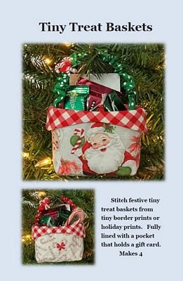 Stitch festive Tiny Treat Baskets from tiny border prints. Fully lined with a pocket that holds a gift card. Makes 4