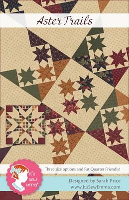 The Asters Trails Quilt Pattern by It’s Sew Emma features sawtooth star blocks, forming a radiant display of stars in vibrant fall colors. With three size options available and fat quarter-friendly, this quilt is the ideal project to bring autumn warmth into your home. The Asters Trails Quilt features the Quail Run collection by Kansas Trouble for Moda Fabrics. Quilt Sizes: Small Lap 48.5 in x 48.5 in / Large Lap 72.5 in x 72.5 in / Queen 96.5 in x 96.5 in. ** Available January 2026 **