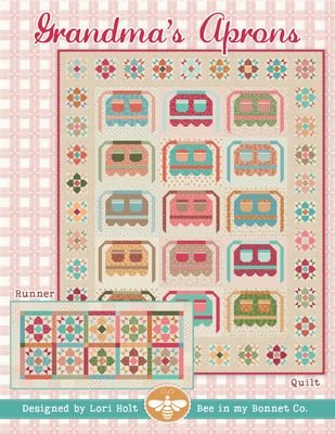 The Grandma’s Aprons Quilt Pattern by Lori Holt brings back memories of baking cookies with your grandmother. This heartfelt design features novelty apron blocks that resemble the aprons grandma used to hang by the kitchen door and tie around her waist. This quilt is finished off with a charming scrappy flower block border. Additionally, the pattern includes an option for a matching runner. Finished sizes: Quilt 74.5” x 90.5” / Runner 38.5” x 80.5” **Available June 2026**