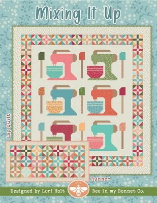 The Mixing It Up Quilt Pattern by Lori Holt beautifully combines vintage and novelty blocks. It features delightful blocks of stand mixers and spatulas, all enclosed by a border made up of scrappy blocks. This border is ideal for scrappy quilt enthusiasts. The pattern also includes an option for a runner, perfect for completing the vintage kitchen aesthetic. Finished sizes: Quilt 68.5” x 73.5” / Runner 38.5” x 78.5” **Available June 2026**