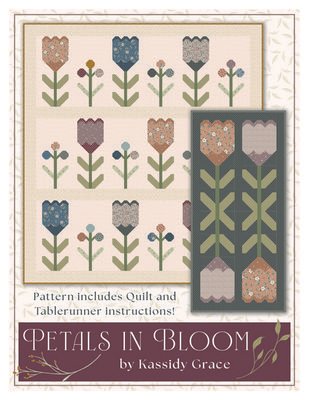 The Petals in Bloom Quilt Pattern by Kassidy Grace features neatly arranged rows of flowers in full bloom. Both the flower and berry blocks are designed for easy piecing with flip corners, making this pattern suitable for confident beginners. The pattern includes two size options: a quilt and a table runner! The toughest decision will be choosing which of these lovely floral projects to make. Finished sizes: Quilt 81.5in x 81.5in / Tablerunner 24.5in x 52.5in