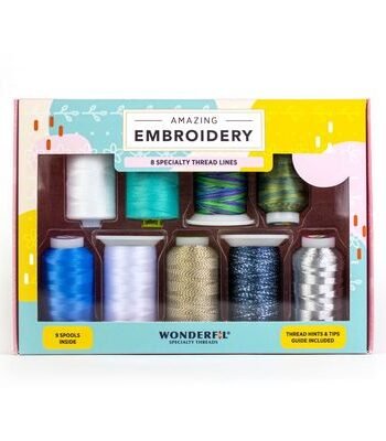 Includes 9 spools: 1 x Rinse N Gone, 1 x Spagetti, 1 x Fabulux, 1 x Mirage, 2 x decobob, 1 x D-Twist, 1 X Glamore, X Spoltlite. Available in 4 different colorways with threadlines selected for machine quilting.
