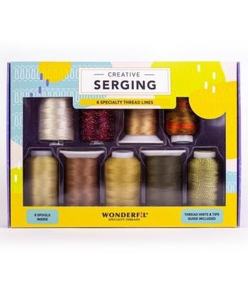 Includes 9 total spools- 1x Razzle, 1x Dazzle, 2x Accent, 2x SoftLoc, 2x Designer, 1x D-Twist, as well as an information slip with a link to educational videos on how to use the threads inside. Available in 4 different colorways with threadlines selected for serger/overlocker machines- Modern NCSP-MODER, Earth Tones NCSP-EARTH, Poweder Room NCSP-POWDR, Marina NCSP-MARIN. **Map Pricing**$42.48 This item is subject to a Minimum Advertised Pricing Policy (MAP price listed) Full Brewer MAP policy details are available for review on our website under the Shop Resource tab.