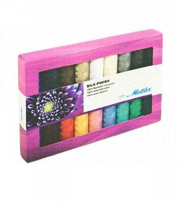 Mettler Silk-Finish SFC18-KIT Thread Set is Egyptian cotton, 164 yards per spool. The natural fibre is gentle on the skin. Feels soft, smooth, and silk-like. Due to the mercerization process SILK- FINISH reaches a high breaking resistance, has reduced shrinkage and is ironing resistant It is the perfect thread for all you quilting and sewing needs. 18 spools in the following colors: 0046, 0109, 0504, 0120, 1057, 0350, 1091, 0247, 0757, 1304, 0825, 1002, 1222, 2000, 3612, 0322, 1282, 4000.
