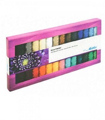 Mettler Silk-Finish SFC28-KIT Thread Set is Egyptian cotton, 164 yards per spool. The natural fibre is gentle on the skin. Feels soft, smooth, and silk-like. Due to the mercerization process SILK- FINISH reaches a high breaking resistance, has reduced shrinkage and is ironing resistant It is the perfect thread for all you quilting and sewing needs. 18 spools in the following colors: 0046, 0111, 0109, 0504, 0450, 0120, 1057, 0020, 1091, 0314, 0757, 0247, 1314, 4000, 1282, 0322, 0265, 3612, 2000, 1222, 0900, 1002, 0825, 1304, 1316, 0350, 0039.