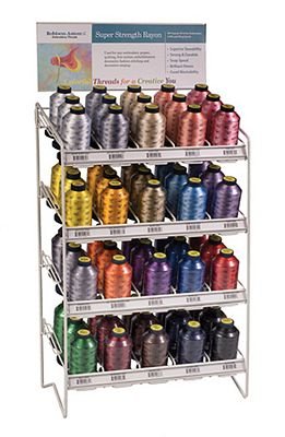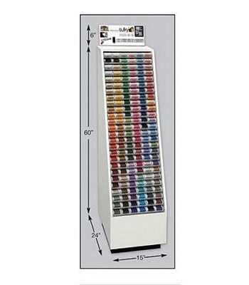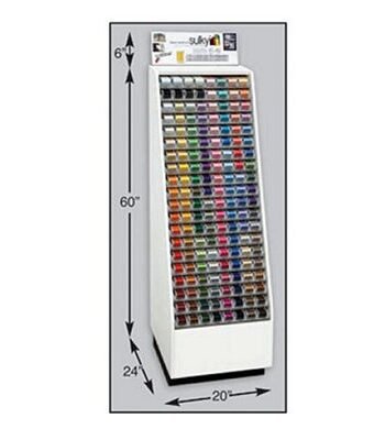 Comes filled with 3 spools each of the top 152 colors of art# 943-, plus 2 facings of White & Black bobbin thread (art# 822-) and Clear & Smoke invisisble thread (art# 232-). 160 slots total. 66"H x 20"W. Flat rate freight charge of $75.00. DROP SHIP - FREIGHT INTENSIVE Freight Intensive items are non-returnable. Billable transportation charges for freight intensive items will be the greater of the dimensional weight compared to the actual weight. In addition to transportation charges, freight carriers may assess an additional oversize charge per package.