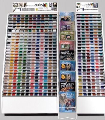 12 Wt. Sulky Filaine Acrylic Petites 50 Yd Snap Spools - Top 69 Colors with 3 Double Facings, Two 36 Slot Wooden Displays - 3 Spools Per Color