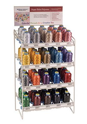 210 solid color Designer (tex 27 all purpose polyester sewing & serger thread). 5 spools per color on roll down shelving mounted to slimline slatwall fixture. Total 1050 spools. ***Drop Ship***Freight Intensive** Dropship and Freight Intensive items are non-returnable*** Billable transportation charges for freight intensive items will be the greater of the dimensional weight compared to the actual weight. In addition to transportation charges, freight carriers may assess an additional oversize charge per package.***