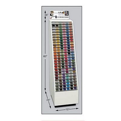 Comes filled with 3 spools each of the top 152 colors of art# 942-, plus White & Black bobbin thread (art# 822-)plus Clear & Smoke invisisble thread (art# 232-). 156 slots total. 66″x15″. Flat rate freight charge of $75.00. DROP SHIP – FREIGHT INTENSIVE Freight Intensive items are non-returnable. Billable transportation charges for freight intensive items will be the greater of the dimensional weight compared to the actual weight. In addition to transportation charges, freight carriers may assess an additional oversize charge per package.
