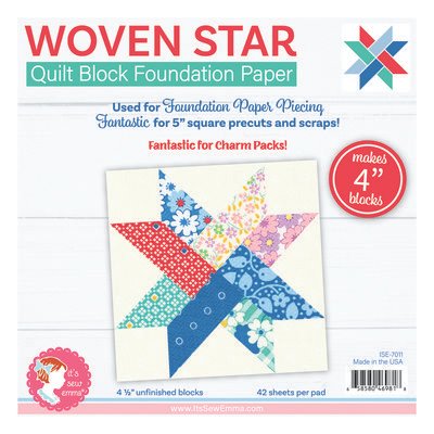 Make perfect Woven Star quilt blocks every time! Shaded and numbered templates make this simple paper piecing fuss-free. Each pad makes 42 Woven Star quilt blocks. Paper size: 6.25″ square. **It’s Sew Emma prohibits customers from selling on Amazon or unauthorized third-party sellers to resell on Amazon. Brewer customers who disregard this policy may have purchase orders canceled or accounts terminated.**