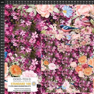 Avalana Knit Jersey- Big w/ flowers and birds Pink