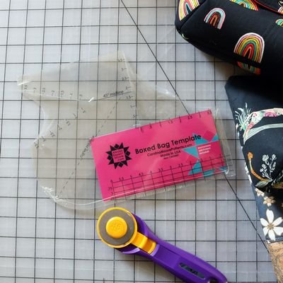 The Boxed Bag Template is a new product designed by Carolina Moore to make it easier to make bags, pouches, boxes, and more out of fabric. The template has been designed to be used with a 45mm rotary cutter, to cut out boxed corners and darted corners without fear of cutting too far.Included with your Boxed Bag Template are written instructions, as well as a simple pattern for making a boxed-bottomed zippered pouch.
