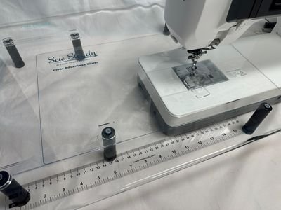 This clear 12″ x 20″ polyester Glider allows you to see thru your table. Easy bobbin access and includes cutting guide to create your own feed dog hole. Ideal for sit down long arms. Designed to work on Extension Tables, Ruler Bases and Cabinet Inserts. Secures to surface with micro suction technology. Sold in a tube for ease of storage.