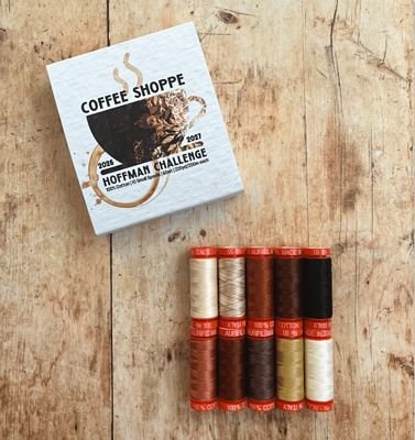 Hoffman California Fabrics, established in 1924 by Rube P. Hoffman, continues its legacy of innovation and artistry under the direction of the fourth generation of the Hoffman family. Known worldwide for design excellence and superior quality, the company invites makers to participate in the 37th Annual Hoffman Challenge. The centerpiece of the 2026–2027 Hoffman Challenge is Coffee Shoppe, a stunning new batik collection featuring 18 rich and cozy tones—from earthy browns and deep blues to taupe, burnt orange, and charcoal. Participants are required to use at least 5 of the 18 featured batiks and are encouraged to highlight their creations with threads from the coordinating Aurifil thread set—ten small spools of 50wt thread in a warm, inviting palette that perfectly complements the collection’s comforting hues. 100% Cotton | 10 Small Spools | 50wt: 2000, 4666, 2155, 2360, 2692, 6728, 4012, 4671, 2915, 6722. **Available March 2026**